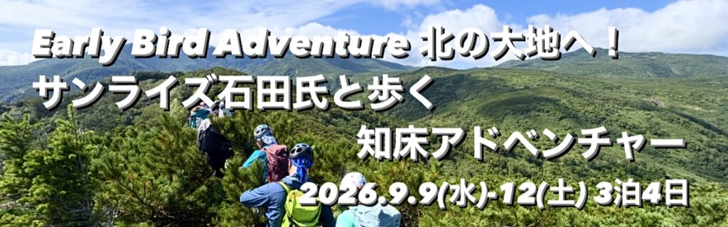 2026年04月08日 Early Brid Adventure 北の大地へ!2026 サンライズ石田氏と歩く知床アドベンチャー!予約受付開始しました。